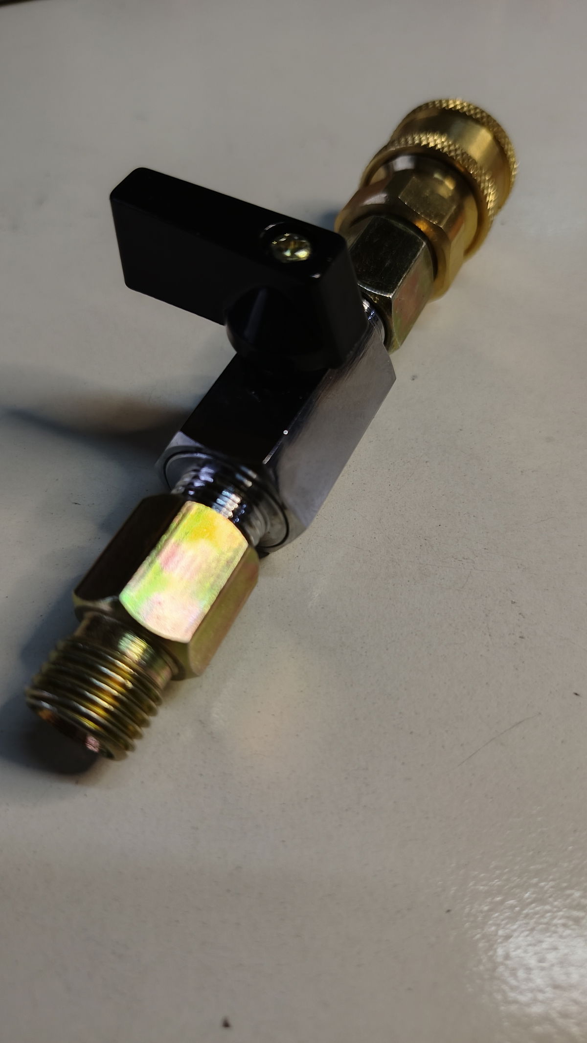 Tiene valvula de corte y acople rapido de 1/4.